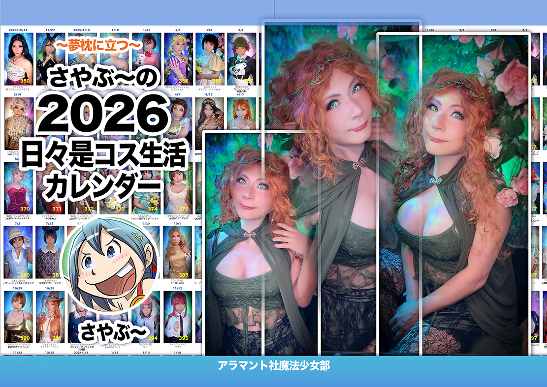 2026年さやぶ〜コスプレ写真カレンダー!。これさえあれば365日枕元に立つ! 仕様:B5カラー/本文16ページ/2025年12月31日発行/¥1,000(写真集+カレンダーセット価格¥1,500/通販価格¥1,870) |